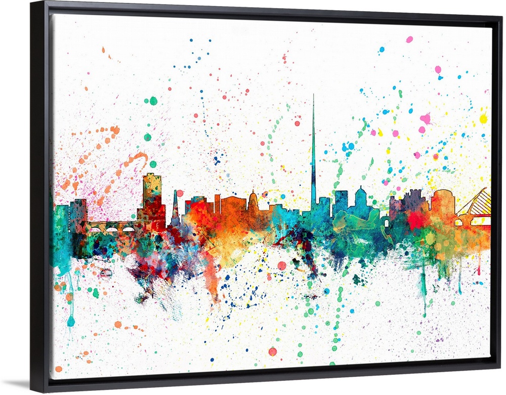 <p>Wild and vibrant paint splatter silhouette of the Dublin skyline.</p>