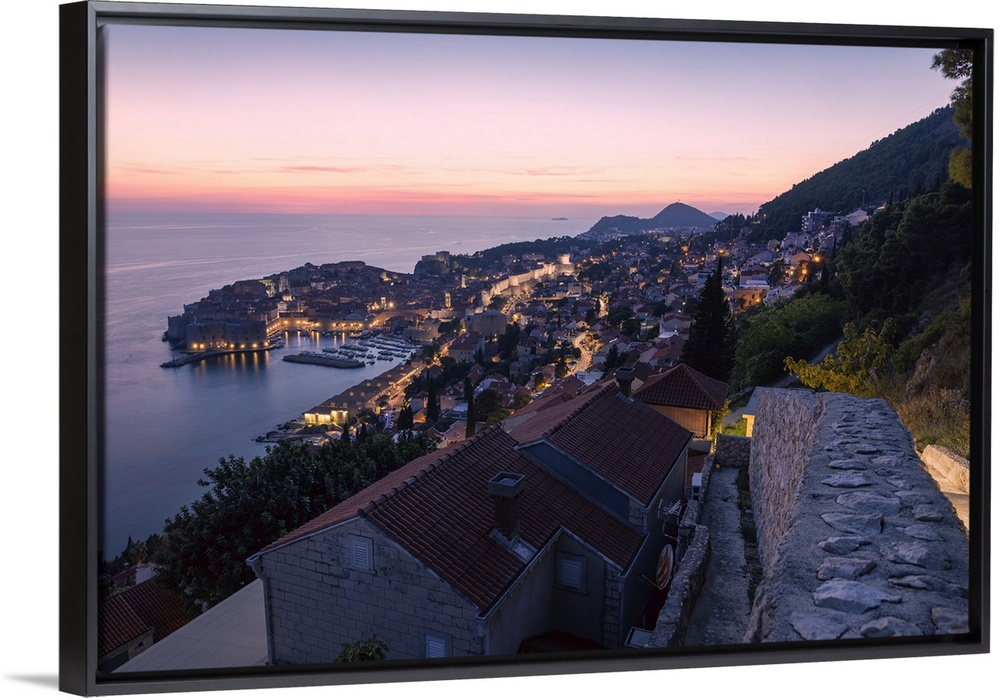 <p>The old town and coastline of Dubrovnik, Croatia, during blue hour after sunset.</p>