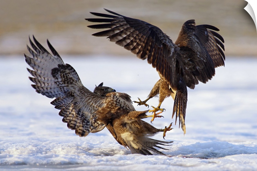 <p>An intense photograph of two aggressive birds of prey fighting each other while flying.</p>