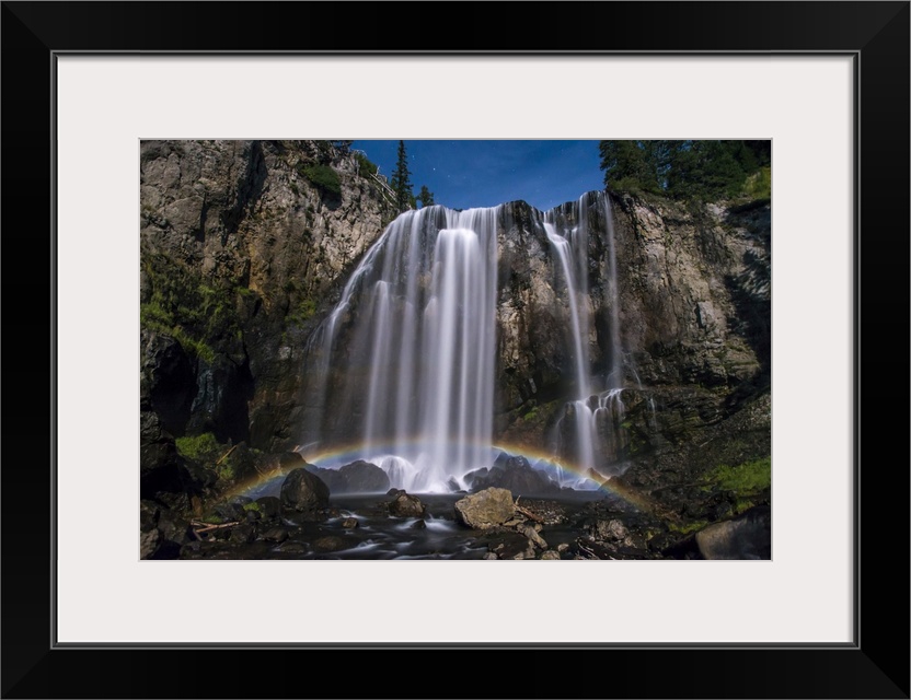 <p>Stunning, Dunanda Falls at night with a lunar rainbow along the Boundary Creek Trail in Yellowstone National Park Wyoming, United States of America</p>