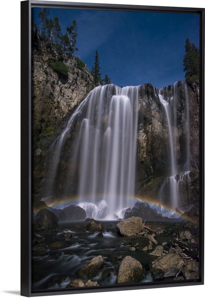 <p>Stunning, Dunanda Falls at night with a lunar rainbow along the Boundary Creek Trail in Yellowstone National Park Wyoming, United States of America</p>
