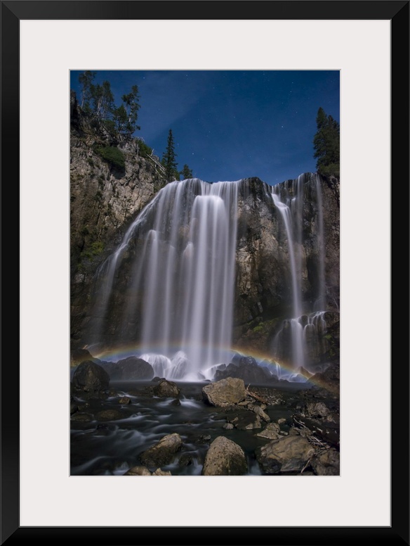 <p>Stunning, Dunanda Falls at night with a lunar rainbow along the Boundary Creek Trail in Yellowstone National Park Wyoming, United States of America</p>