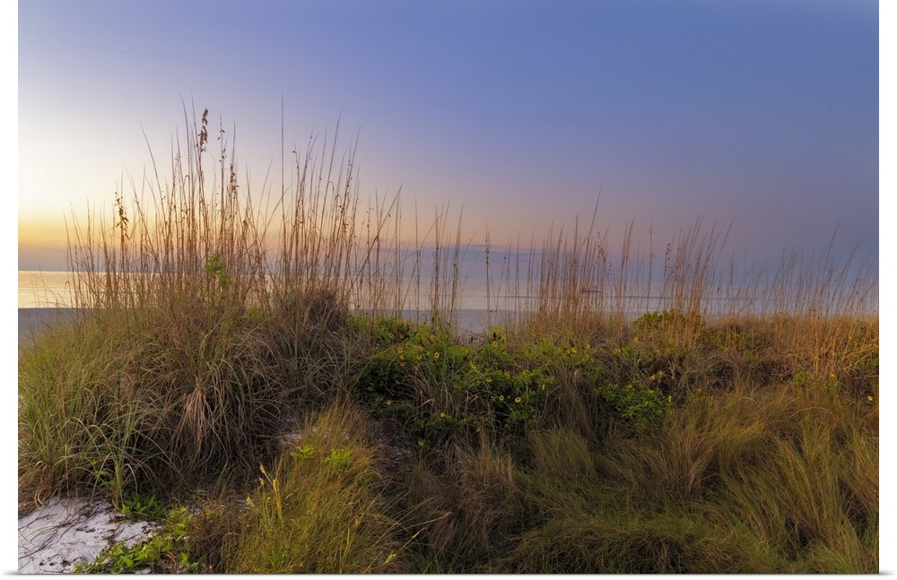 <p>Dune sunflowers and sea oats along Sanibel Island beach in Florida, USA.</p>