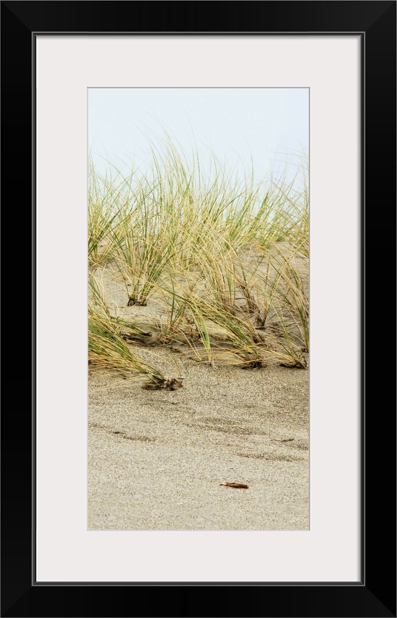 <p>A photograph of a sand dune with tall golden yellow and green beach grass.</p>