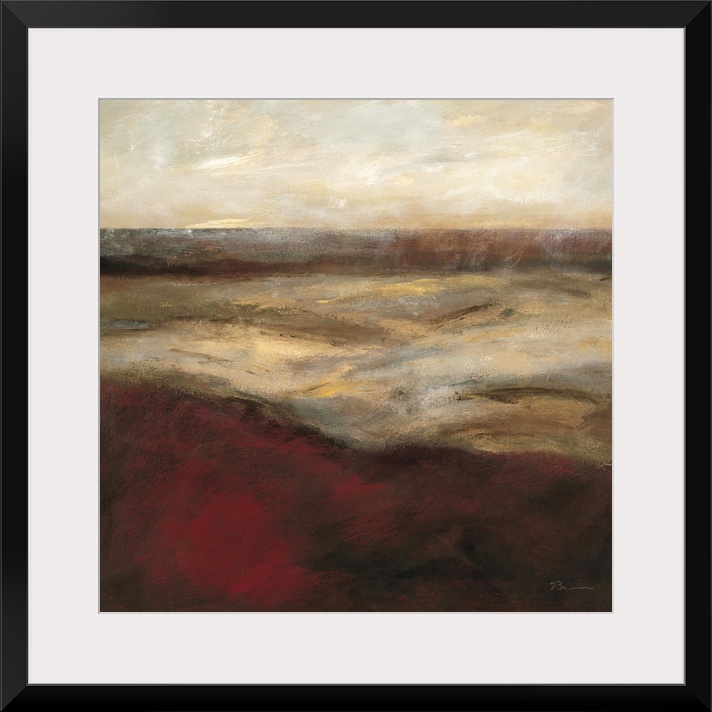 <p>A contemporary painting using neutral and earth tones to convey an abstract landscape.</p>