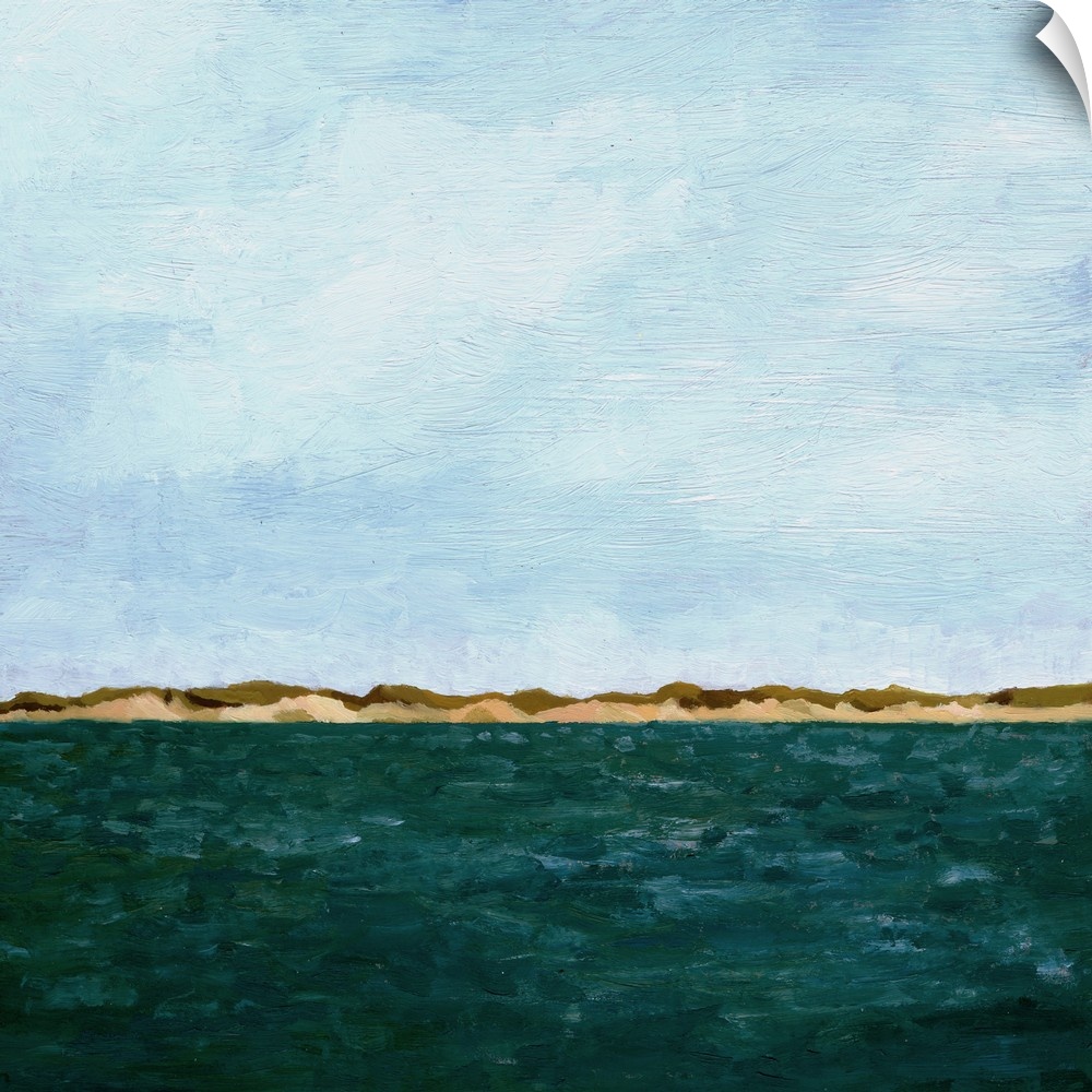 <p>Contemporary painting of a sand dunes on the shore of a lake.</p>