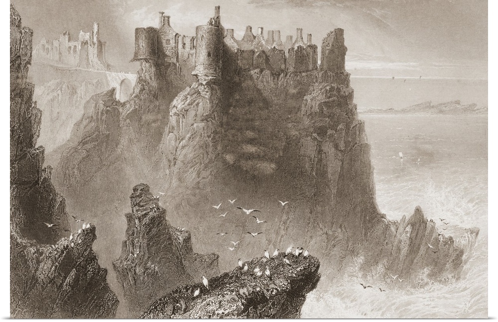 <p>Dunluce Castle, County Antrim, Ireland. Drawn By W. H. Bartlett, Engraved By J. Cousen. From "The Scenery And Antiquities Of Ireland" By N. P. Willis And J. Stirling Coyne. Illustrated From Drawings By W. H. Bartlett. Published London c1841.</p>
