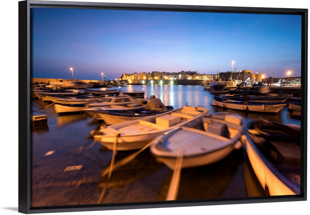 <p>Dusk lights the harbor and the medieval old town of Gallipoli, Province of Lecce, Apulia, Italy</p>