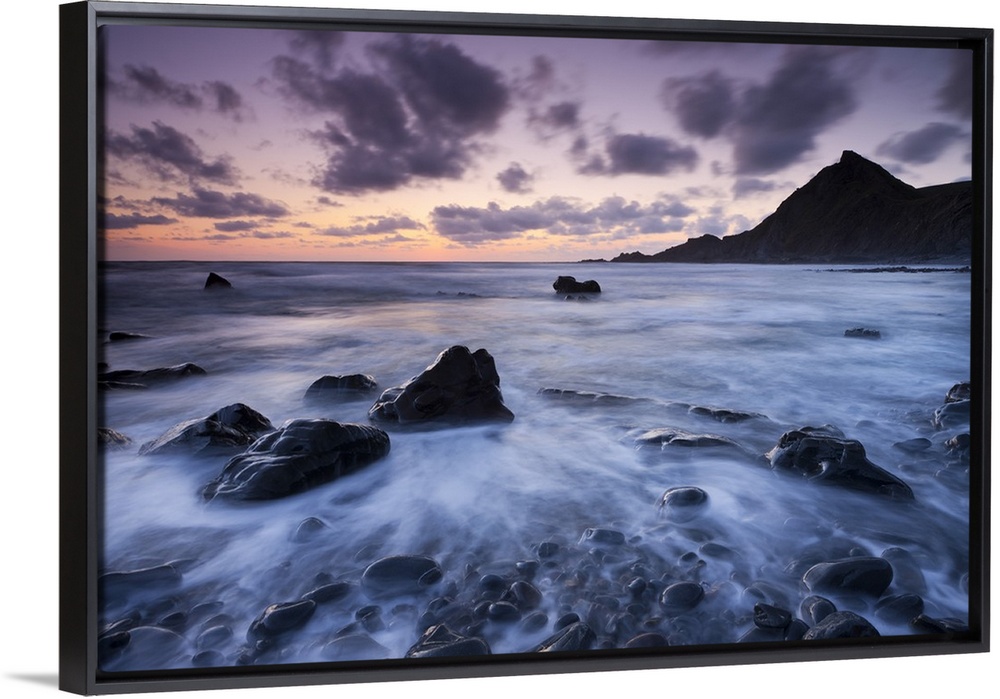 <p>Dusk on the rocky shores of Speke's Mill Mouth in North Devon, England. Summer</p>