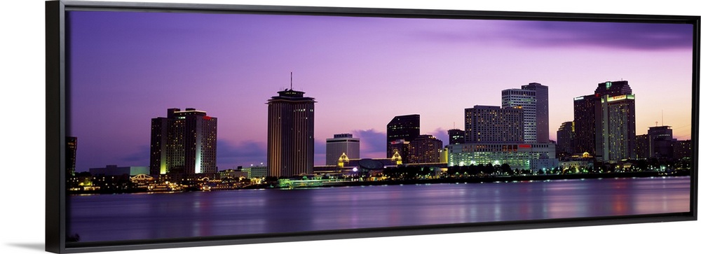 <p>Sunset panorama of the Downtown New Orleans skyline with the Mississippi River in the foreground.</p>