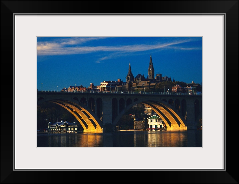 <p>Dusk view of Georgetown U. above Key Bridge over the Potomac River.</p>
