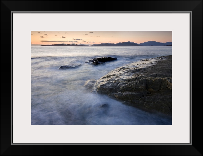 <p>Dusk view towards Taransay and the Isle of hills of North Harris from Borve Beach, Isle of Harris, Scotland</p>