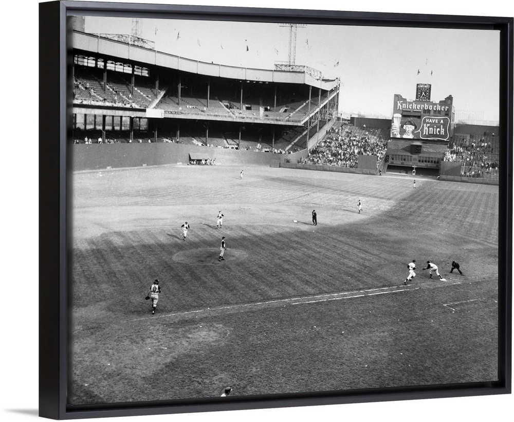 <p>Dusty Rhodes of the New York Giants being thrown out at first base for the final out of the Giants' last game at the Polo Grounds in New York City, a 9-1 loss against the Pittsburgh Pirates attended by 11,606 fans, 29 September 1957. The team would begin playing in San Francisco, California, the following season.</p>