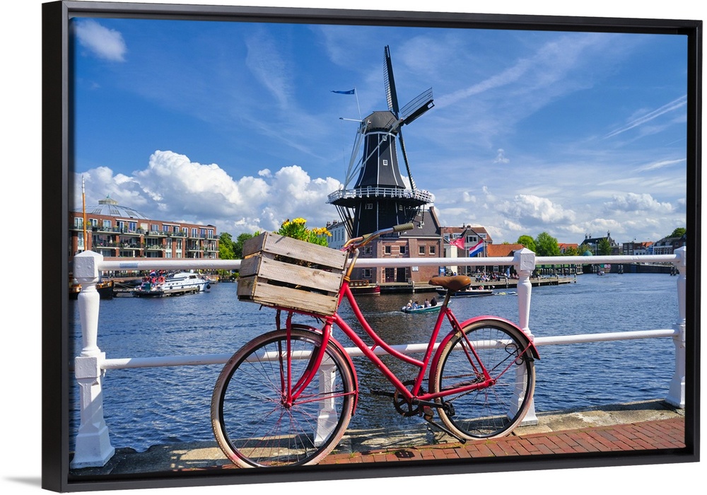 <p>Old Bicycle on the Bridge with the De Adriaan Wndmill in the Background, Haarlem; The Netherlands</p>