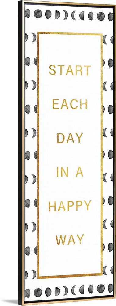 <p>"Start each day in a happy way" in gold text over images of phases of the moon.</p>