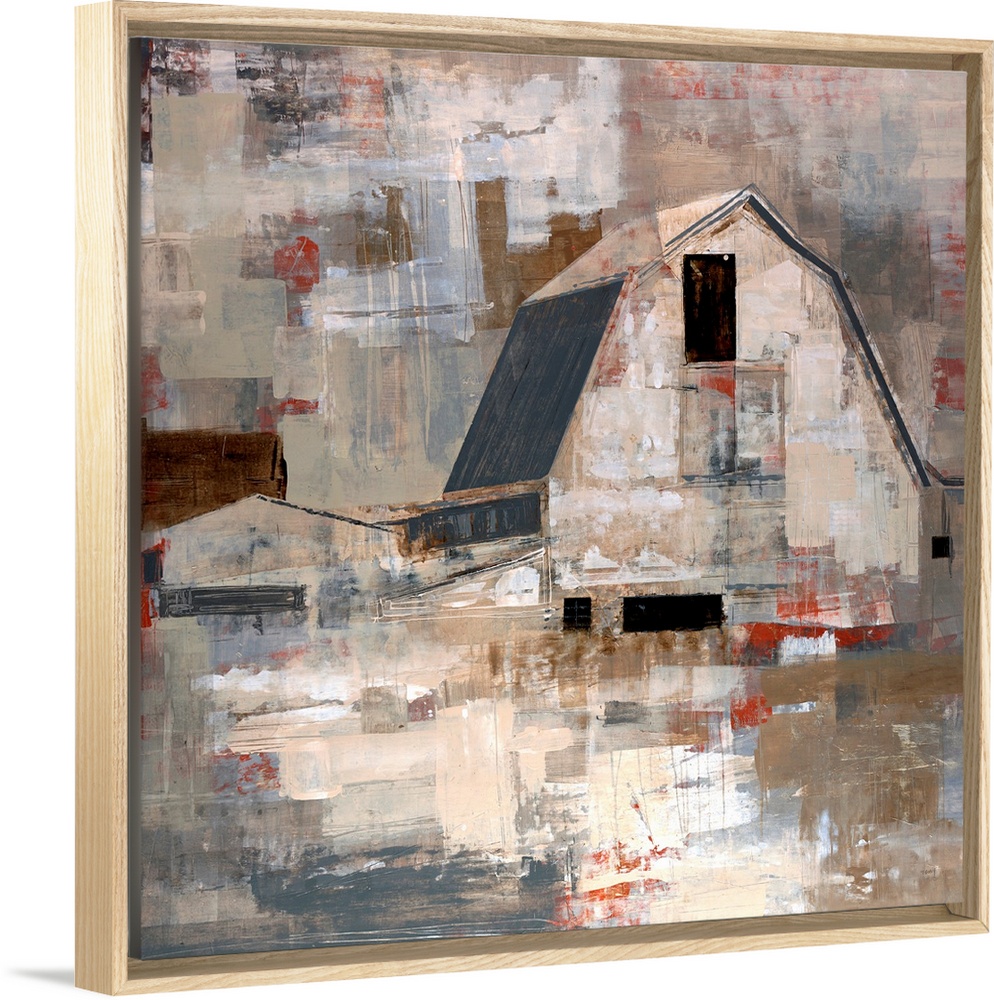 <p>Contemporary artwork of a barn with blocks of colors painted all around it.</p>