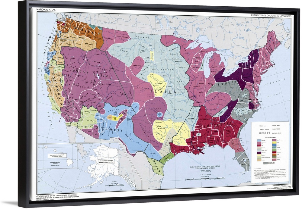 <p>Map, American Indians. 'Early Indian Tribes, Culture Areas And Linguistic Stocks.' Map Compiled By William C. Sturtevant, 1967.</p>