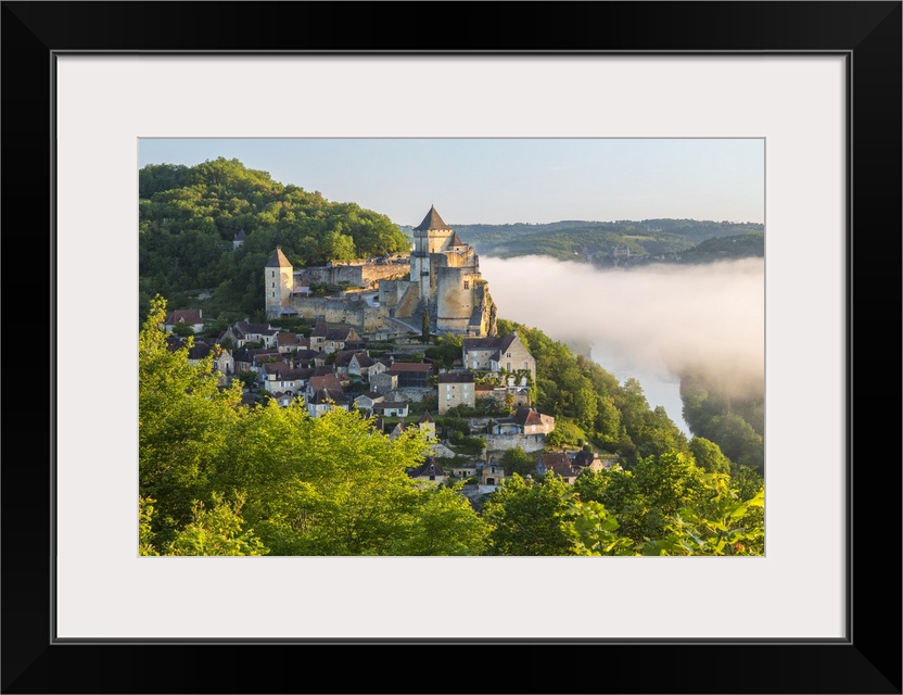 <p>Early morning mist, Chateau de Castelnaud, Castelnaud, Dordogne, Aquitaine, France.</p>