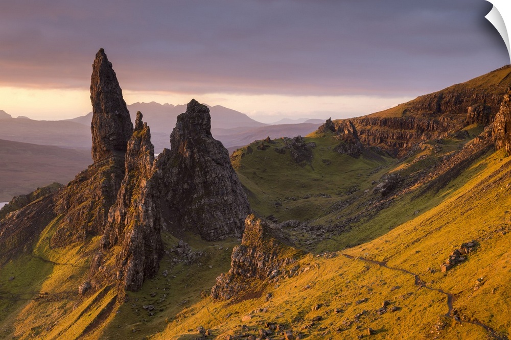 <p>Early morning sunlight at the Old Man of Storr on the Isle of Skye, Scotland. Autumn</p>