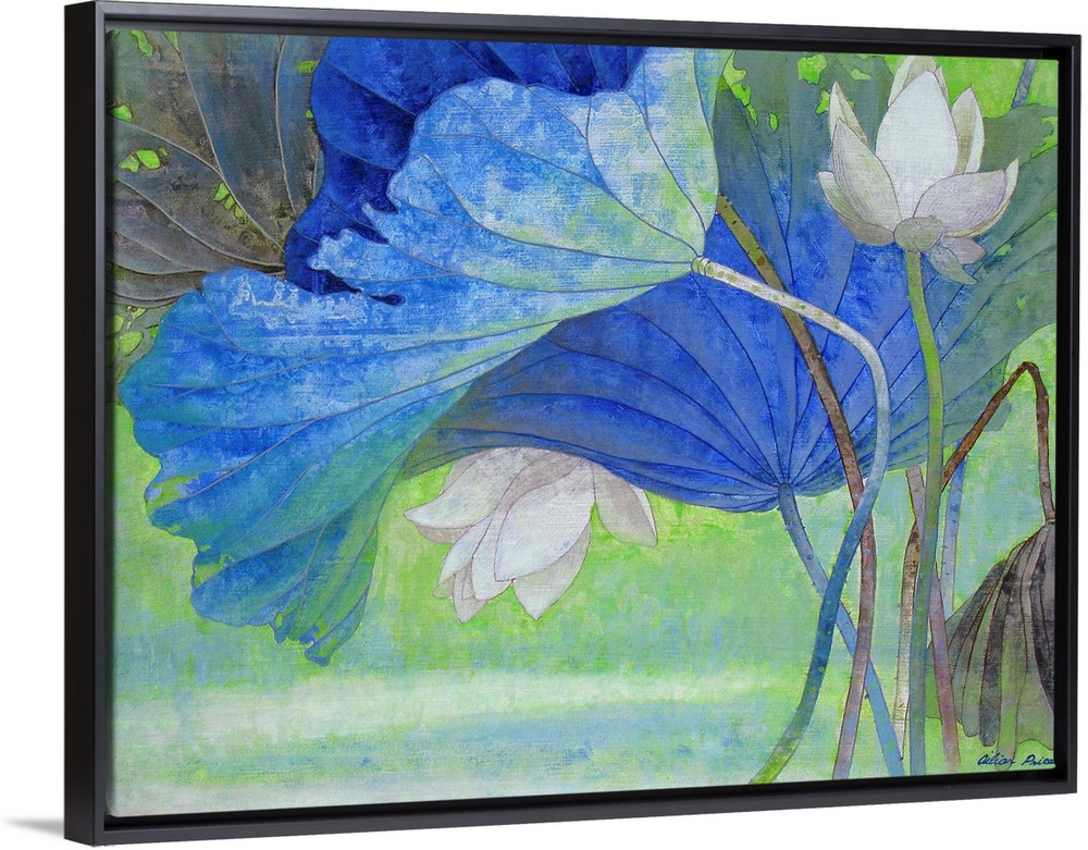 Art Asian Art Plants and Flowers Blue Flowers Contemporary Art Plants and Flowers Florals Water Lily Green Wall Art Painting Ailian Price