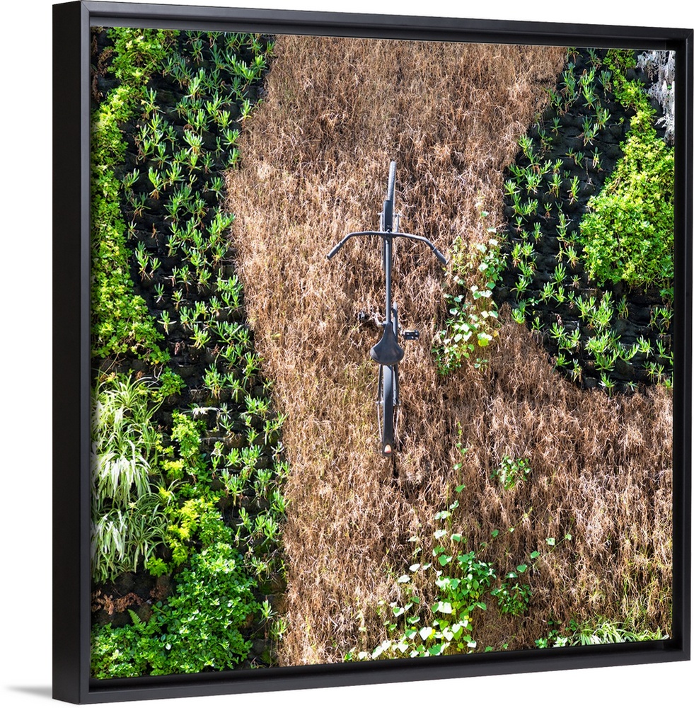 <p>Square photograph of a single bicycle standing in afield of dead grass surrounded by green plants. From the Viva Mexico Square Collection.</p>