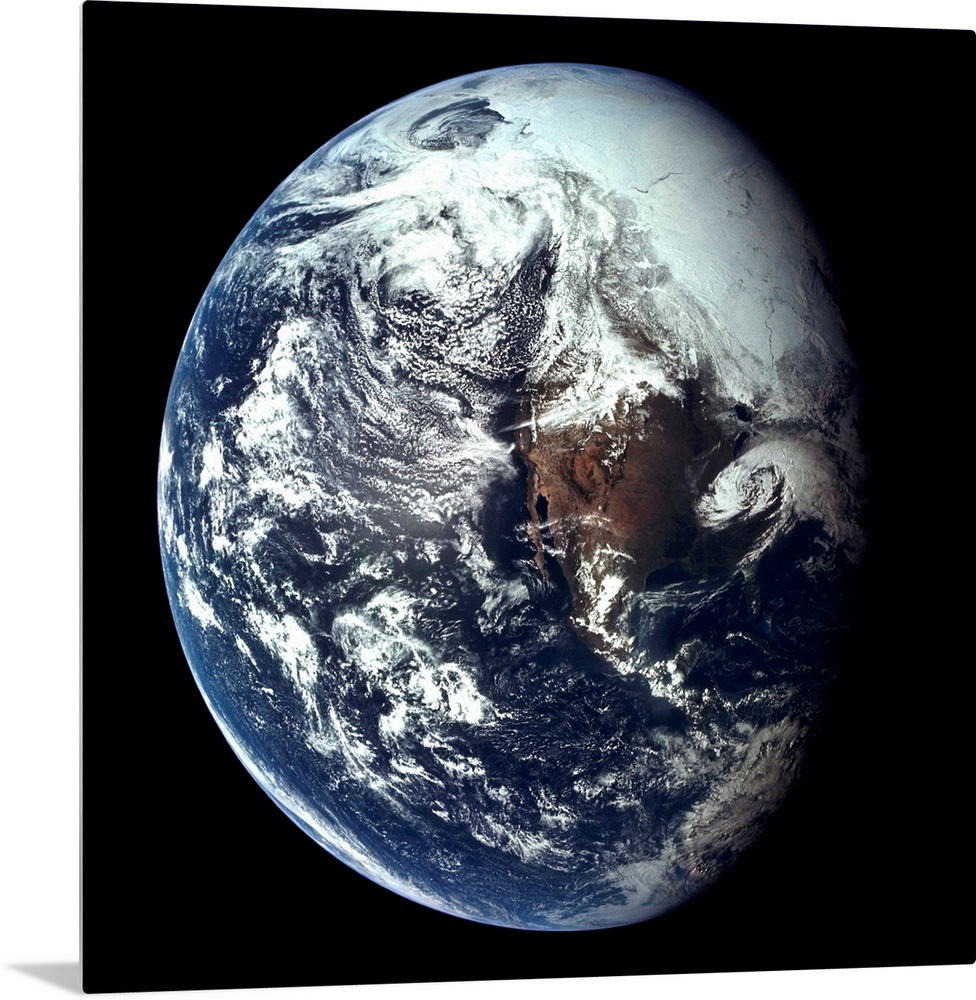 <p>A clear view of the midwestern United States and the Baja California peninsula on a nearly full Earth, from the Apollo 16 spacecraft.</p>
