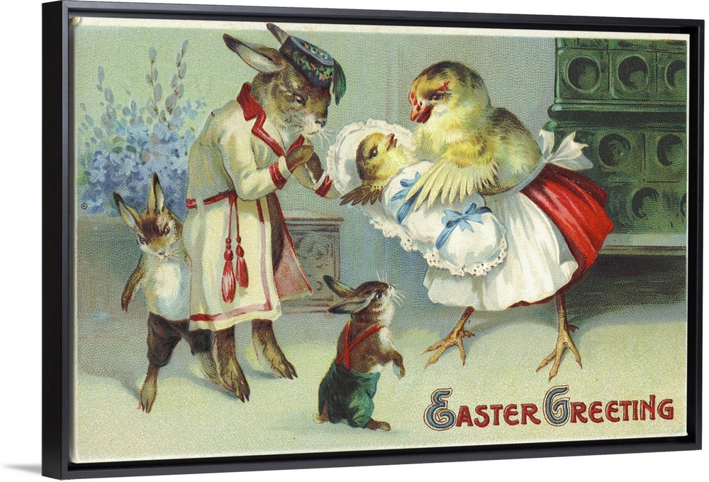 Art Holidays Easter Vintage Art Vintage Greeting Cards Chicken Rabbit