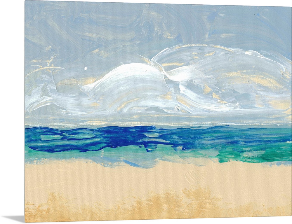 <p>Abstract painting using color placement to convey the image a beach.</p>