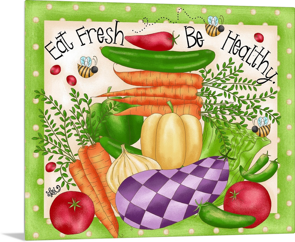 <p>Whimsical colorful art adds cheerful touch to kitchen with an eat healthy message!</p>