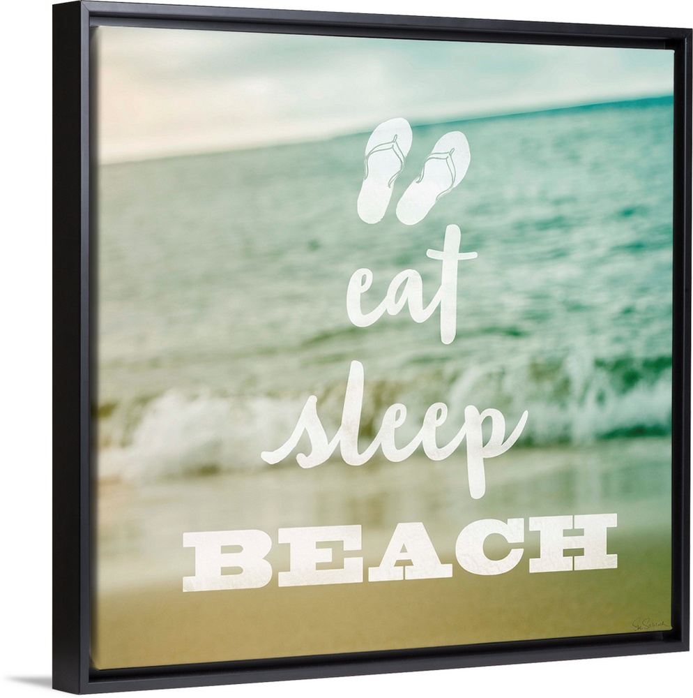 <p>"Eat Sleep Beach" in white text over a pastel image of the beach.</p>