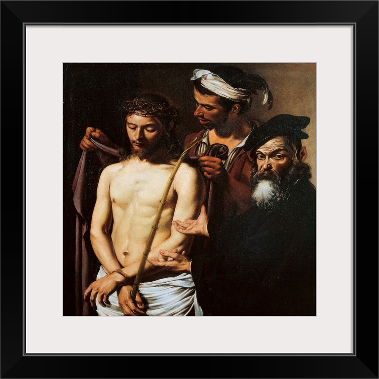 <p>Ecce Homo, by Merisi Michelangelo known as Caravaggio, 17th Century, 1605 about, oil on canvas, cm 128 x 103 - Italy, Liguria, Genoa, Palazzo Bianco Gallery. All. Ecce Homo Jesus Christ crown thorns reed cloak mantle naked burst men Pilate beard hat black</p>
