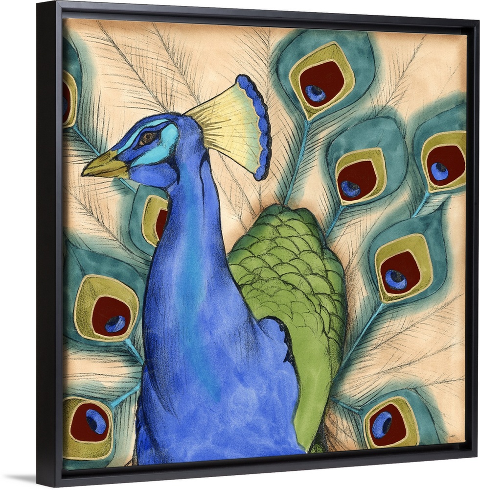 <p>Contemporary artwork of a peacock displaying plumage.</p>