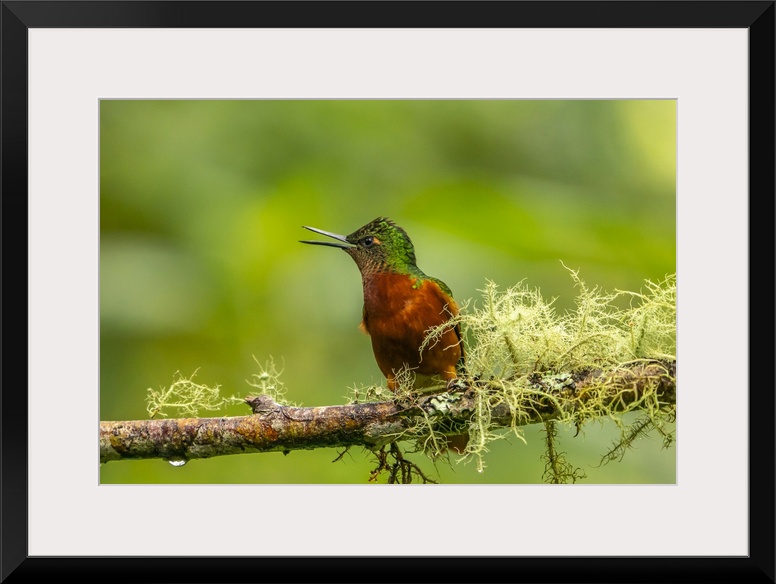 <p>Ecuador, Guango. Chestnut-breasted coronet hummingbird close-up.</p>