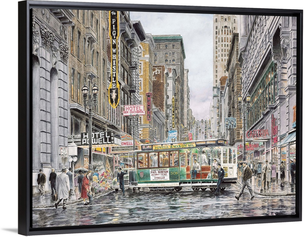 <p>Contemporary painting of a bustling city street.</p>