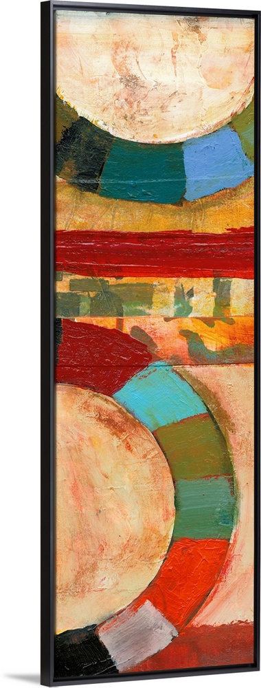 <p>Contemporary abstract painting featuring large rings of color in bright shades.</p>