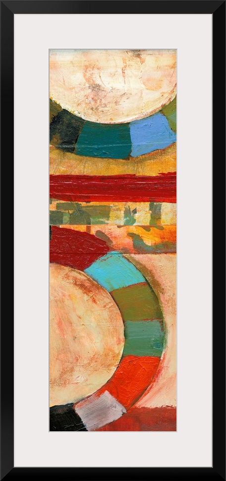 <p>Contemporary abstract painting featuring large rings of color in bright shades.</p>