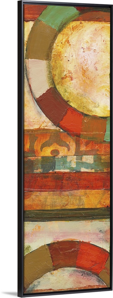 <p>Contemporary abstract painting featuring large rings of color in bright shades.</p>