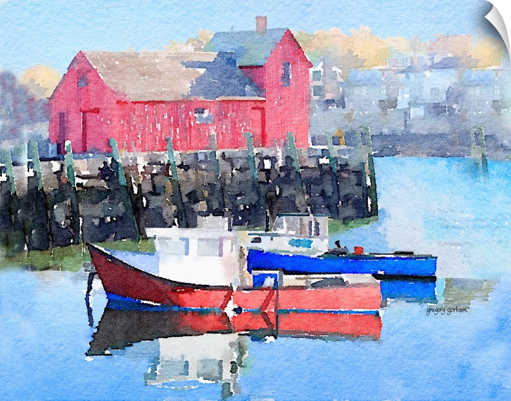 Art Decorative Art Gregory Gorham Docks and Piers Painting Transportation Boat Watercolor