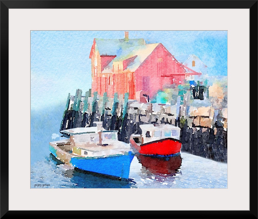 Art Decorative Art Gregory Gorham Docks and Piers Painting Transportation Boat Watercolor