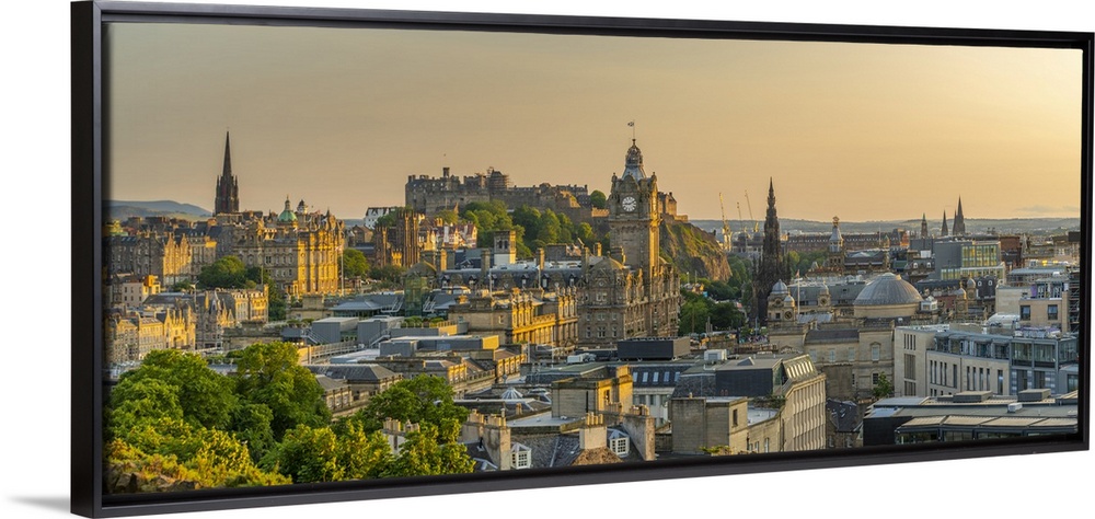 <p>View of Edinburgh Castle, Balmoral Hotel and city skyline from Calton Hill at golden hour, Edinburgh, Lothian, Scotland, United Kingdom, Europe</p>