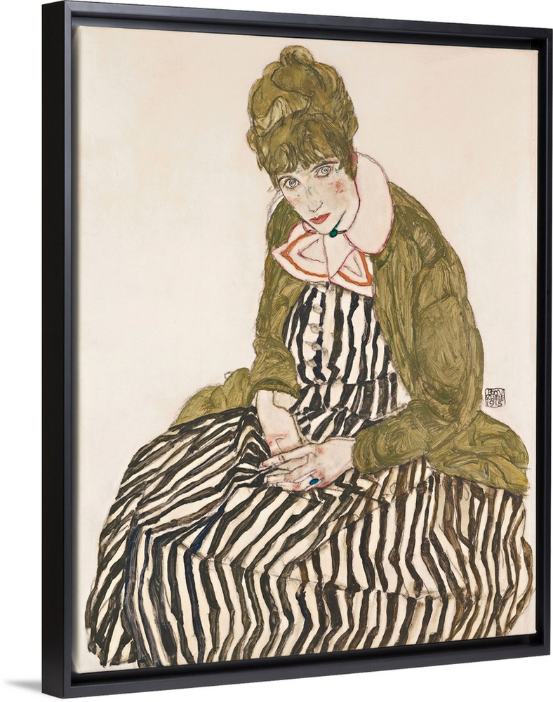 <p>Egon Schiele, Edith with Striped Dress, Sitting, 1915, watercolor, gouache, and crayon on paper, 50.8 x 40.2 cm (20 x 15.8 in), Leopold Museum, Vienna.</p>