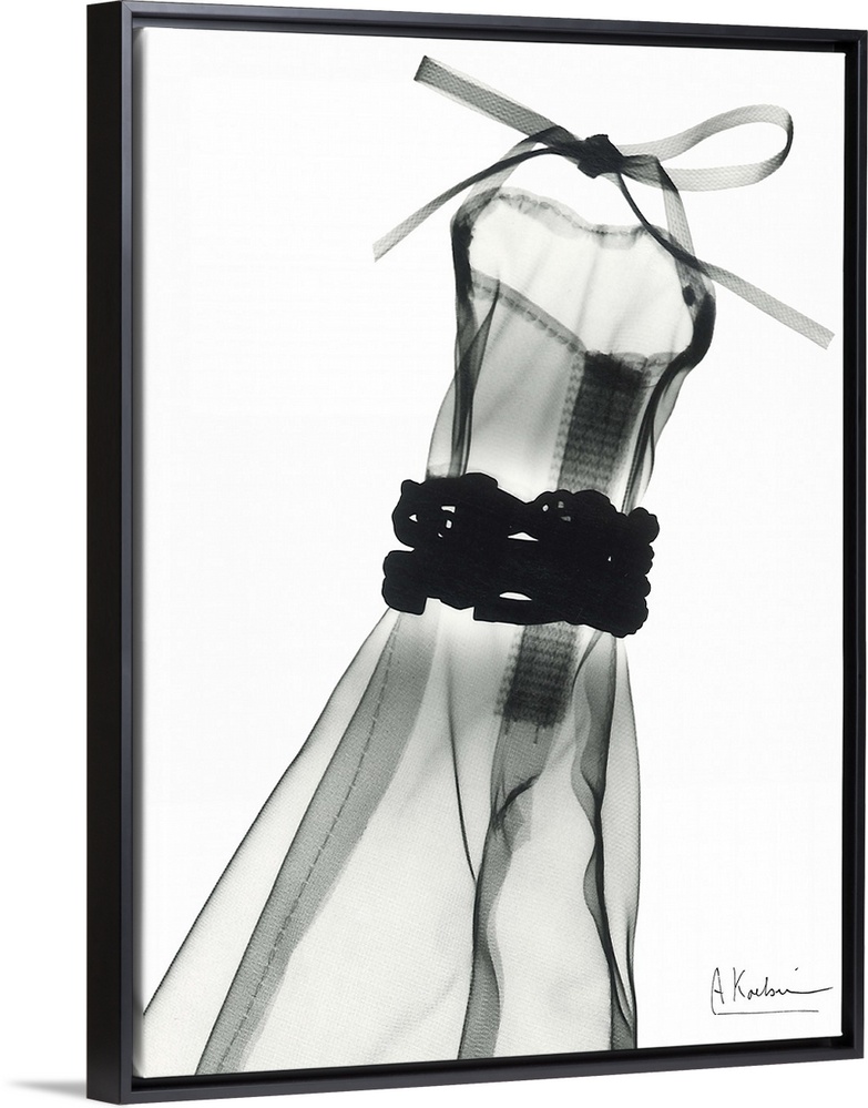 <p>Vertical x-ray photograph of a dress, against a light background.</p>