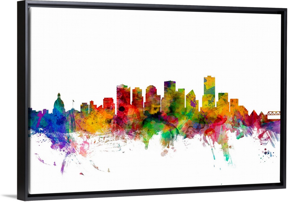 <p>Watercolor artwork of the Edmonton skyline against a white background.</p>