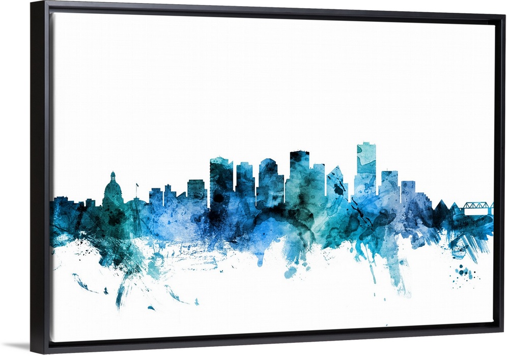 <p>Watercolor art print of the skyline of Edmonton, Canada.</p>