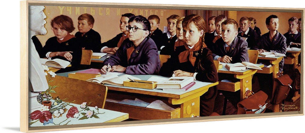 <p>In Rockwells world children disobeyed rules, adolescent girls grappled with social pressures, boys struggled with their evolution into manhood, and, in his most powerful paintings, society confronted issues of race. Many of his images of youth intended to evoke nostalgia, depict real family relationships, and memorialize the everyday. Alternate Title Russian Schoolroom. Approved by the Norman Rockwell Family Agency</p>