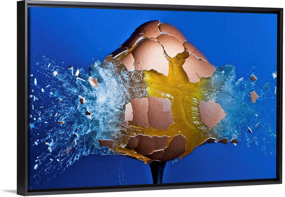 <p>An ordinary egg exploding from a pellet rifle shot.</p>