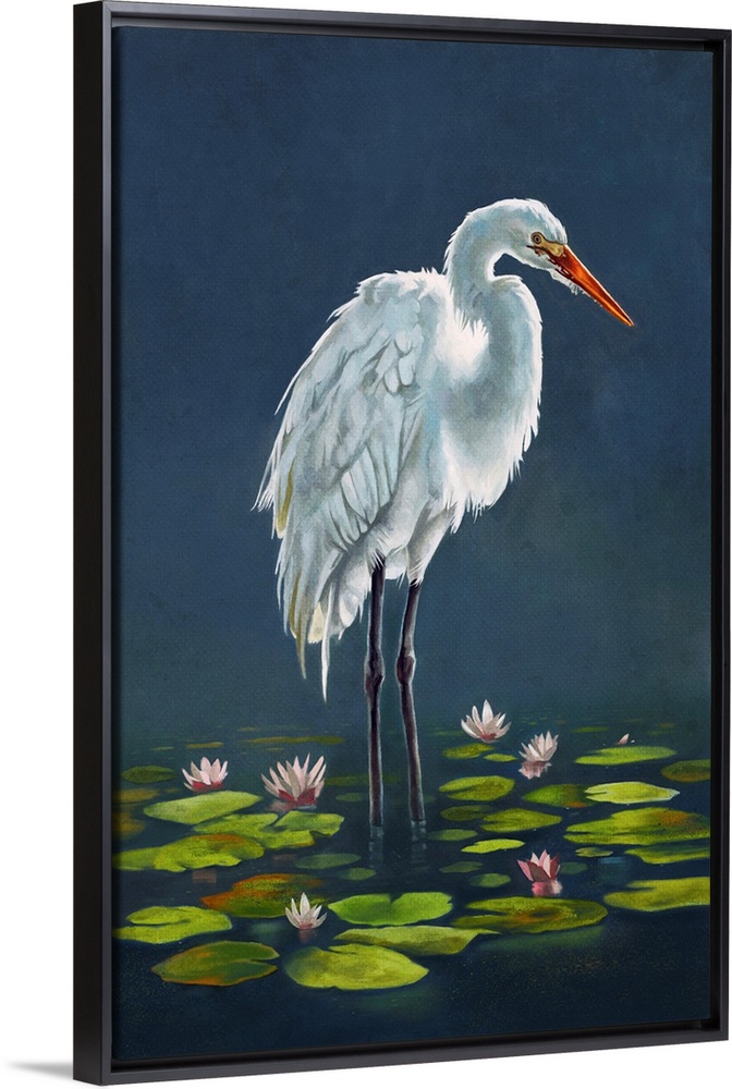 Art Coastal Blue Wall Art Contemporary Art Painting Wildlife Bird Heron and Egret