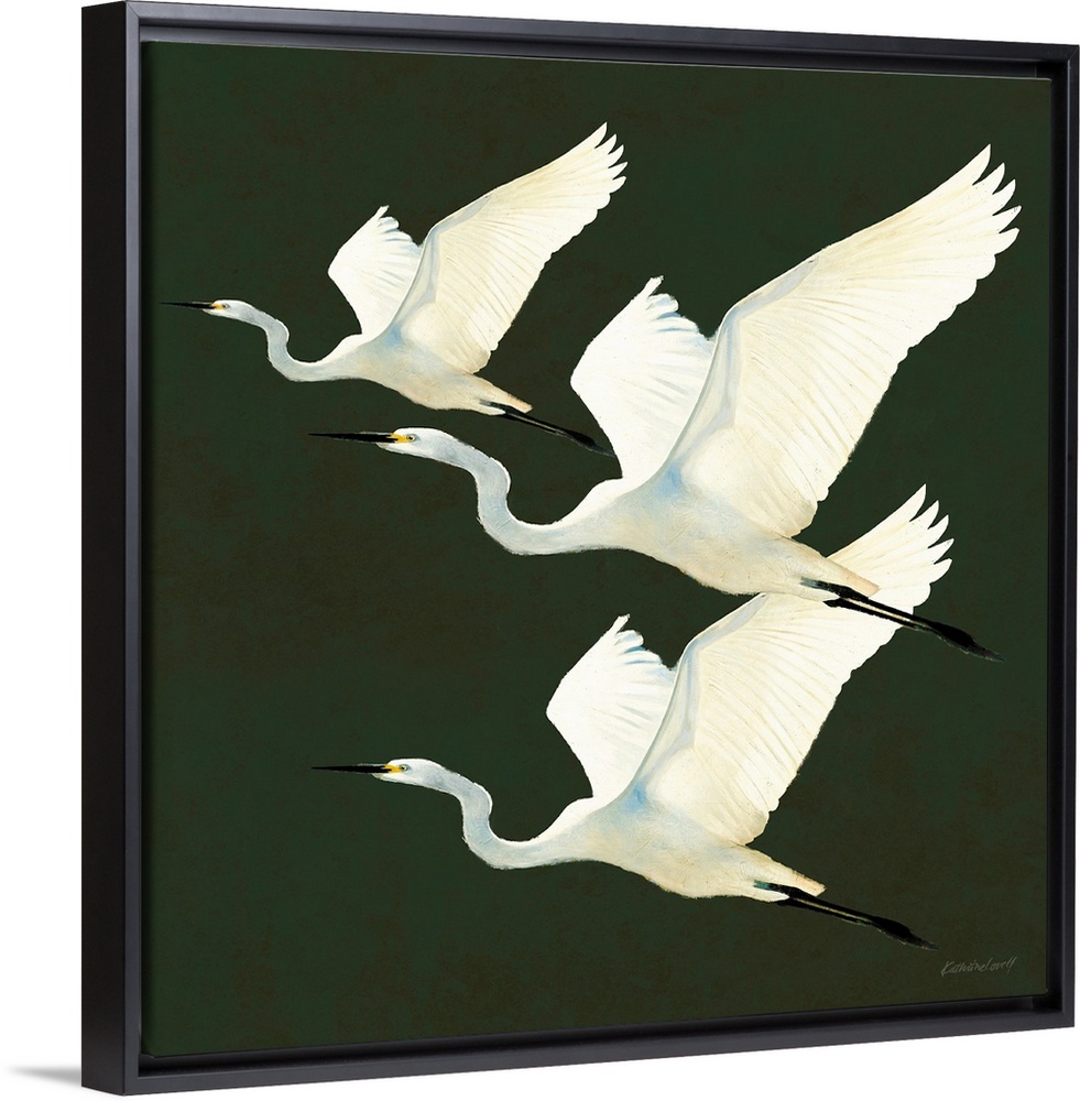 Art Contemporary and Modern Scandinavian Winter Green Kathrine Lovell Painting Wildlife Bird Heron and Egret