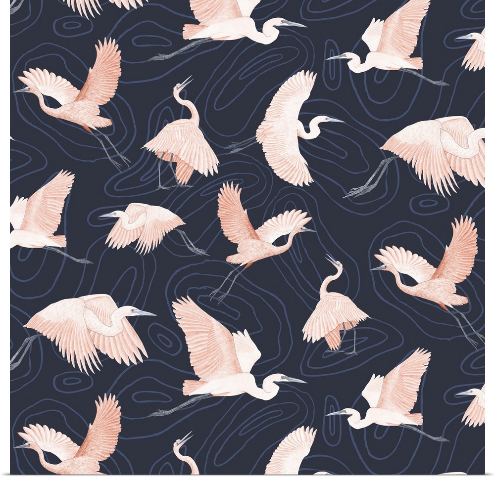 Art Transitional Wildlife Decorative Art Painting Patterns Wildlife Bird Heron and Egret