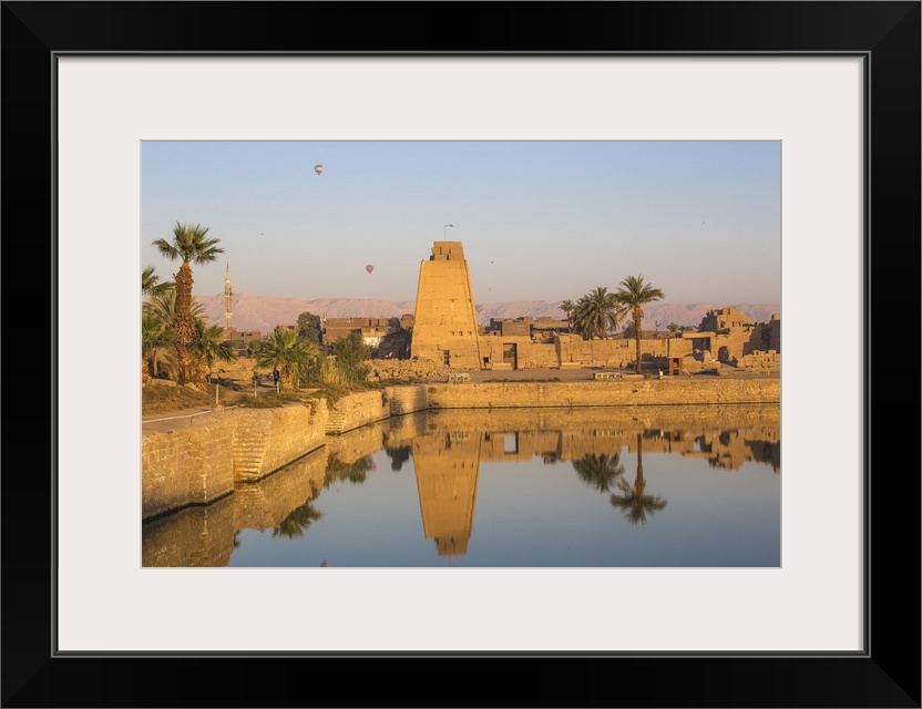 <p>Egypt, Luxor, Karnak Temple, Hot air balloons rise over the Sacred Lake</p>